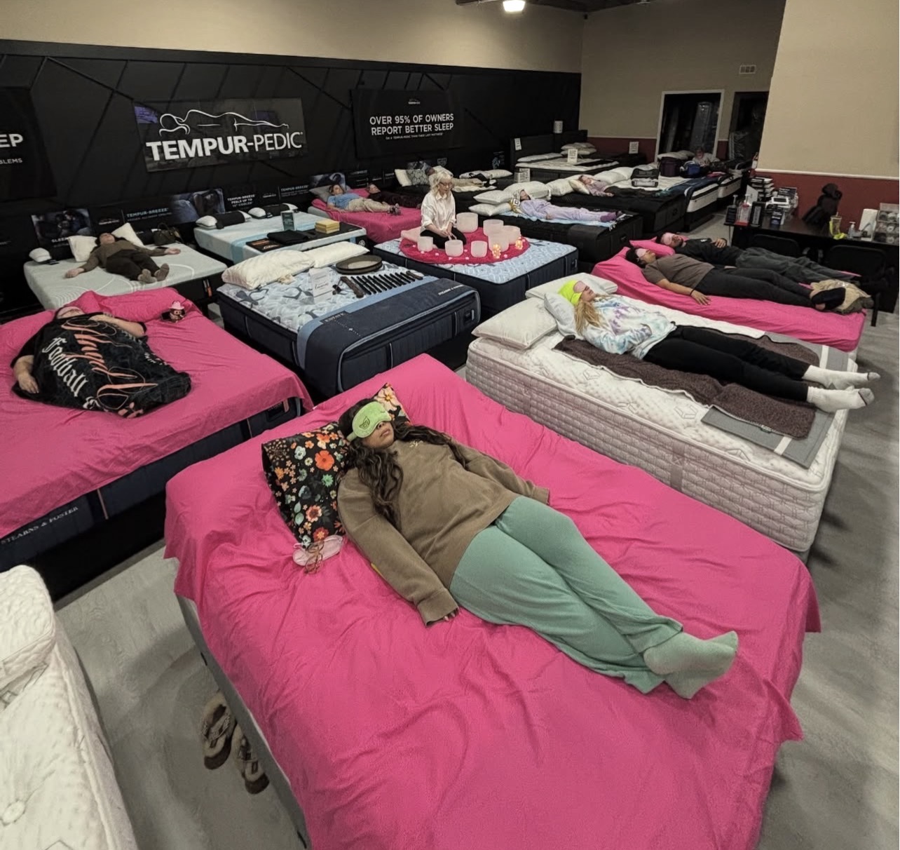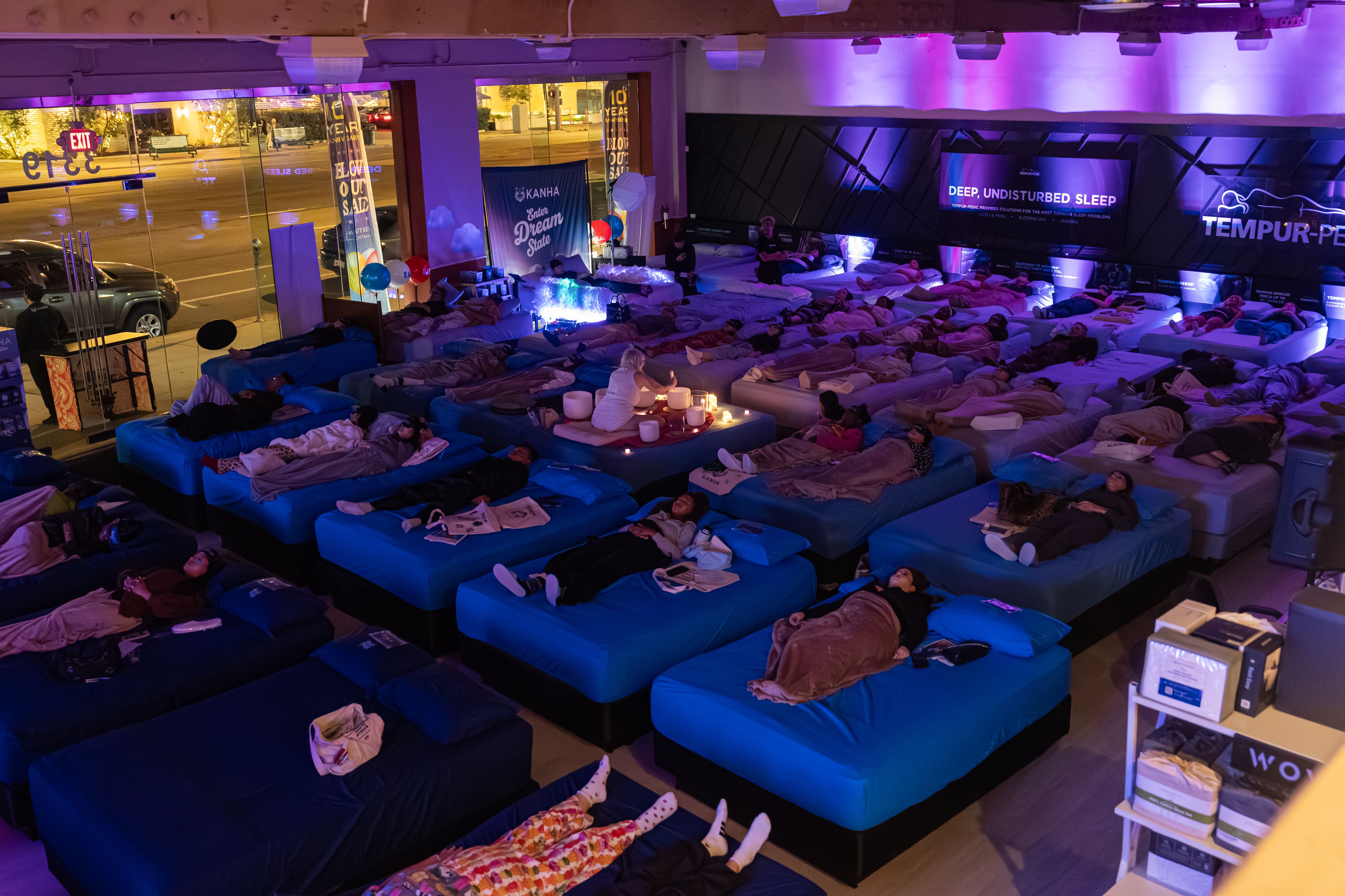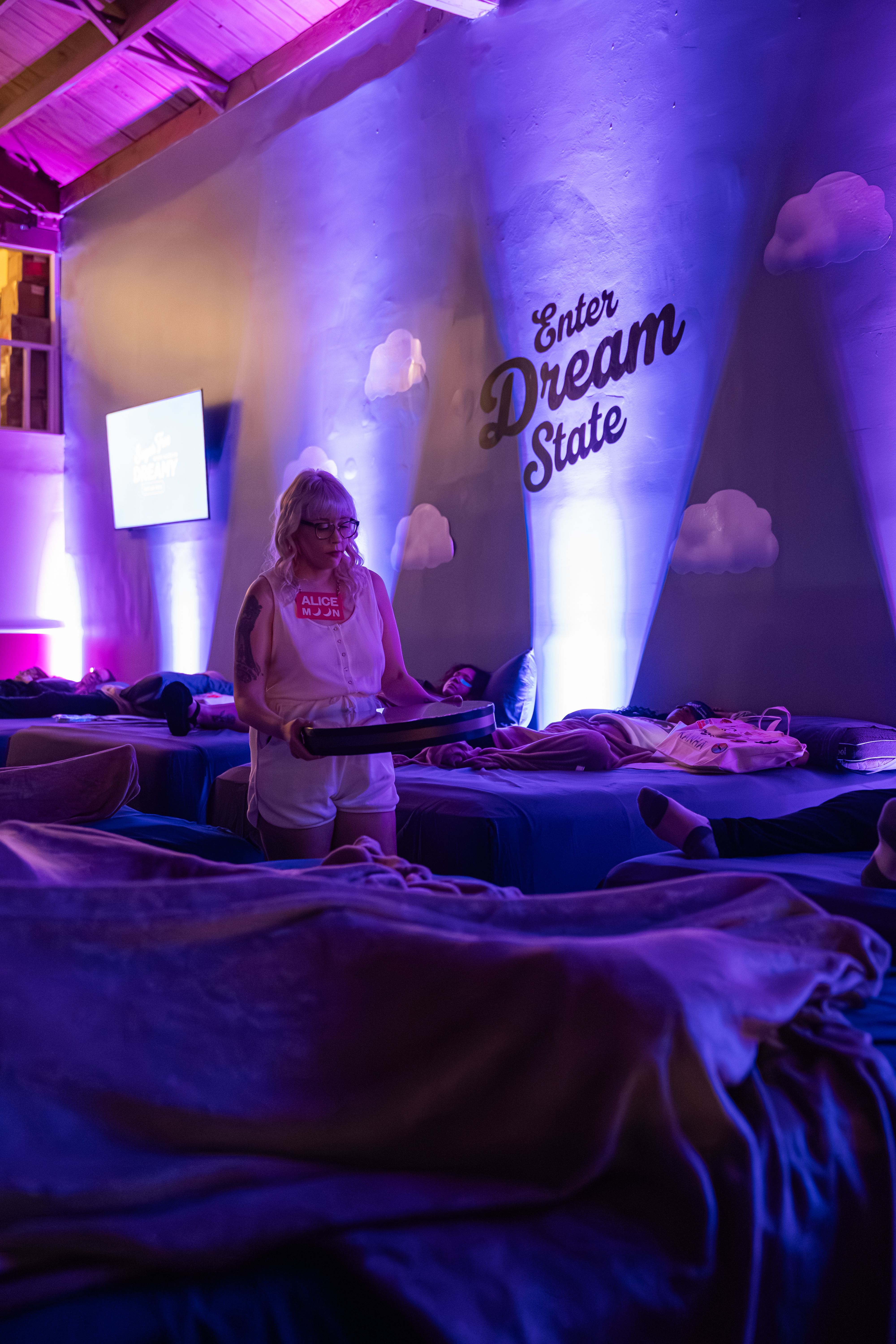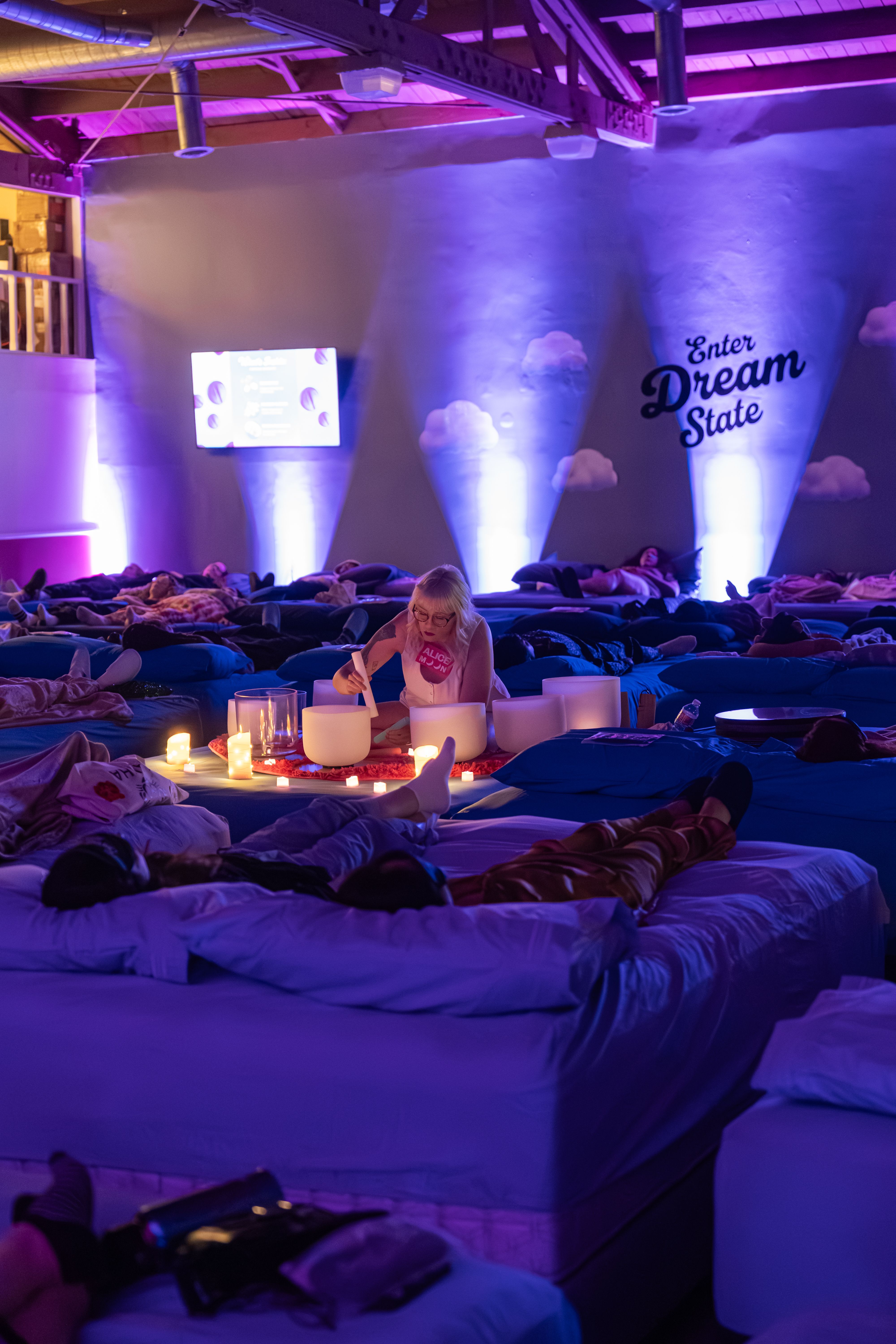 Alice Moon has performed sound baths at a variety of venues and events including a mattress store in Atwater Village, a venue in West Adams, retreats held at private homes, and corporate wellness days. Here’s some photos of Alice Moon in her sound bath element to get an idea of the vibe she brings.